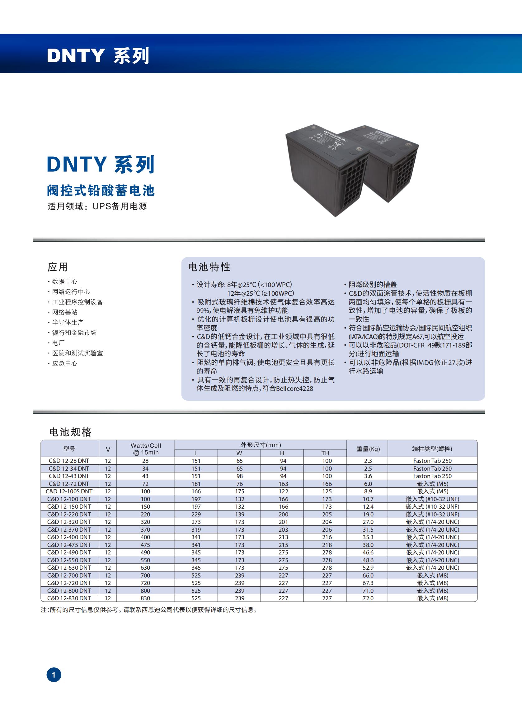 西恩迪—DNTY 系列閥控式鉛酸蓄電池UPS