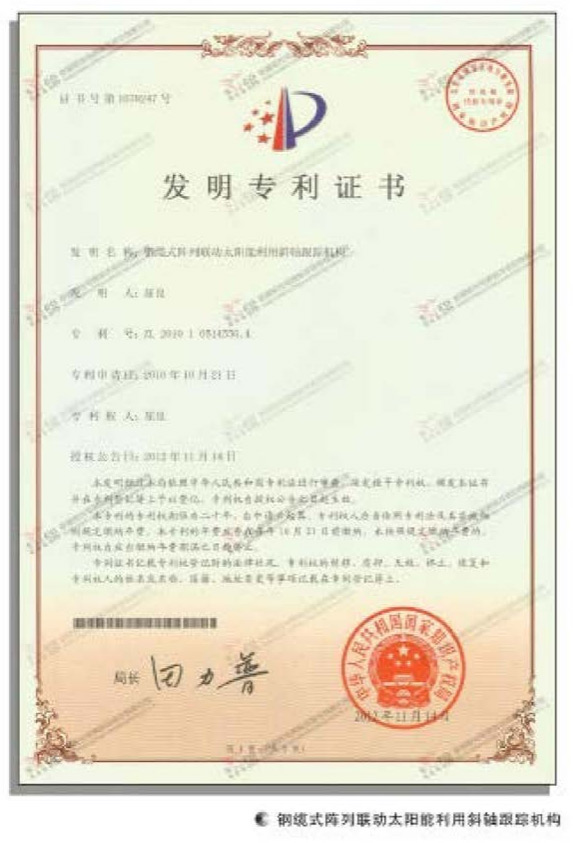 鋼纜式陣列聯(lián)動太陽能利用斜軸跟蹤機(jī)構(gòu)